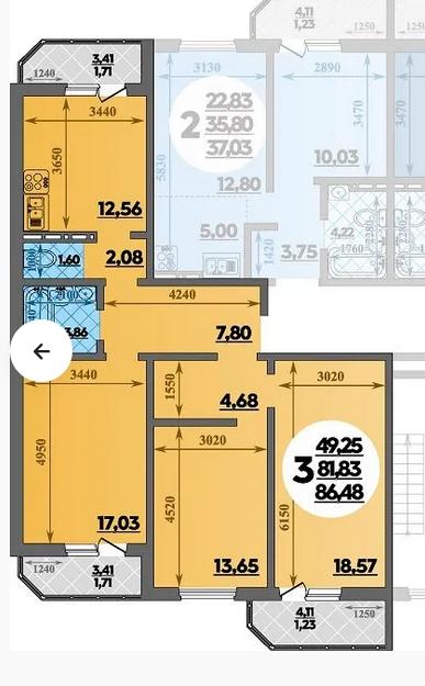 - Количество комнат 3